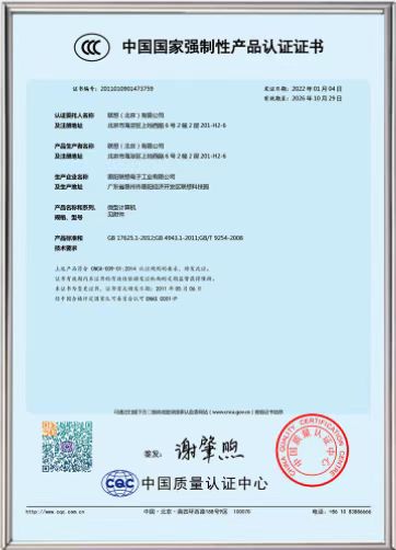 中國(guó)國(guó)家強(qiáng)制性產(chǎn)品認(rèn)證證書掃描件  :   無